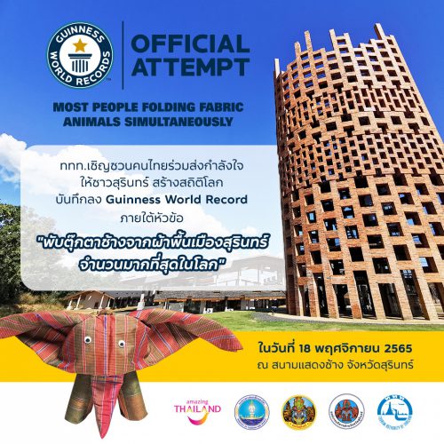กิน-เที่ยว ข่าวประชาสัมพันธ์ คนมีสี ประเด็นร้อน ศิลปวัฒนธรรม เศรษฐกิจ ททท. และจังหวัดสุรินทร์ ประกาศความสำเร็จลงบน Guinness World Record พับตุ๊กตาช้างด้วยผ้าพื้นเมืองสุรินทร์จำนวนมากที่สุดในโลก! Toonist พฤศจิกายน 18, 2022 กระทรวงการท่องเที่ยว... Read More