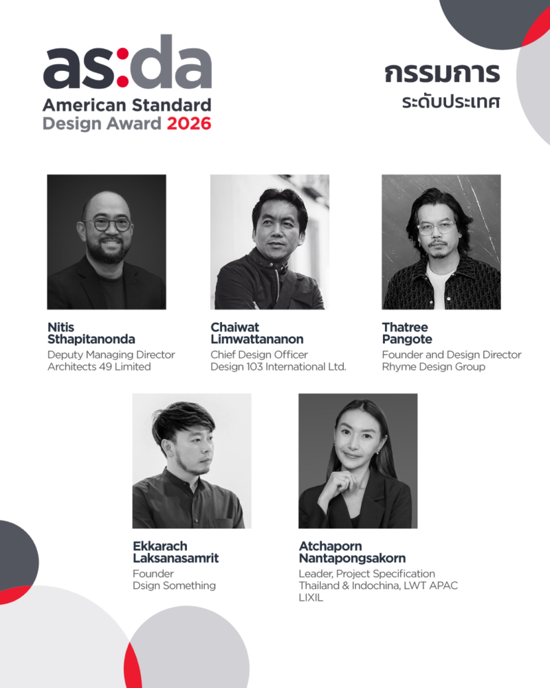 “เนื่องในโอกาสครบรอบ 150 ปีของ American Standard แบรนด์ที่ยึดมั่นในการสร้างสรรค์นวัตกรรมอย่างมีจุดมุ่งหมายโดยได้รับแรงบันดาลใจจากชีวิตจริง เรารู้สึกภาคภูมิใจอย่างยิ่งที่ได้เปิดตัวการประกวดออกแบบห้องน้ำ ASDA ครั้งที่ 4 ด้วยประสบการณ์ความชำนาญ ความสำเร็จในงานดีไซน์ที่มอบความน่าเชื่อถือผ่านเทคโนโลยีอันล้ำสมัย แบรนด์ยังคงมุ่งมั่นในการพัฒนาโซลูชันที่มาช่วยเติมเต็มคุณภาพชีวิตของผู้คนในทุกวัน สำหรับปีนี้ หัวข้อการประกวด ‘Inspiring Everyday Living – การออกแบบห้องน้ำที่สร้างแรงบันดาลใจในทุก ๆ วัน’ ขอเชิญชวนนักออกแบบรุ่นใหม่ร่วมปลดปล่อยพลังแห่งความคิดสร้างสรรค์ผ่านการตีความห้องน้ำที่ไม่เพียงตอบโจทย์ความต้องการที่เปลี่ยนแปลงไป แต่ยังเป็นพื้นที่ที่สมาชิกในครอบครัวใช้เวลาอยู่ร่วมกัน พื้นที่ที่มอบความสงบส่วนตัว หรือแม้กระทั่งเป็นฉากหลังของความทรงจำที่น่าประทับใจในพื้นที่เล็ก ๆ” อองตวน เบแซร์ เดส์ออรส์ (Antoine Besseyre des Horts) ลีดเดอร์ประจำลิกซิล โกลบอล ดีไซน์ (LIXIL Global Design) ภูมิภาคเอเชีย